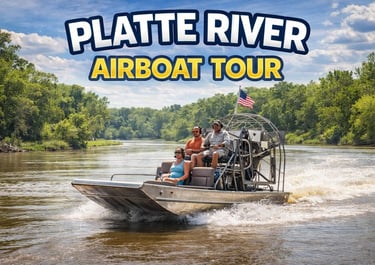 Enjoy a memorable day on the water with a one-day Platte River Airboat Tour. Experience the beauty of the river, local wildlife, and the excitement of an airboat ride for a unique outdoor adventure. Additional details coming soon.